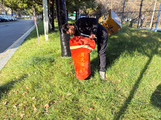細(xì)心的業(yè)主不難發(fā)現(xiàn),樹木已悄然穿上整齊的“冬裝”。物業(yè)工作人員有條不紊地對(duì)喬木根部進(jìn)行涂白處理。這層白色“防護(hù)衣”不僅美觀,更是樹木越冬的“守護(hù)者”——它能有效反射部分陽光,減緩樹干因晝夜溫差過大而導(dǎo)致的凍裂風(fēng)險(xiǎn),同時(shí)清除樹皮縫隙中潛藏的害蟲及蟲卵,為來年春季樹木茁壯成長打下堅(jiān)實(shí)基礎(chǔ)。