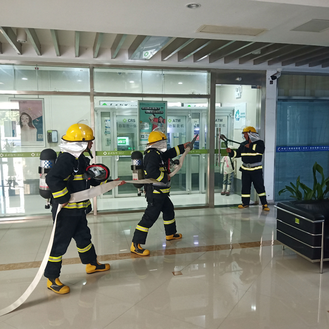 為了確保演練正常有序地開展,公司制定了詳細(xì)演練方案,對(duì)參演人員提前進(jìn)行流程及安全注意事項(xiàng)培訓(xùn)。本次擬A樓一層突然起大火正式拉開演練帷幕,現(xiàn)場(chǎng)人員立即將險(xiǎn)情情況上報(bào)指揮部,揮員部立即部署,滅火行動(dòng)組、疏散救援組、通訊聯(lián)絡(luò)組同時(shí)展開行動(dòng)。安全防護(hù)組立刻關(guān)閉總電源閘門;滅火行動(dòng)組拿取就近的消防器材進(jìn)行滅火;疏散救援組迅速引領(lǐng)員工從安全通道撤離到安全地點(diǎn);通信聯(lián)絡(luò)組將現(xiàn)場(chǎng)情況及時(shí)反饋給總指揮和現(xiàn)場(chǎng)指揮。待火勢(shì)完全撲滅,所有人員到達(dá)預(yù)定安全地點(diǎn),通訊聯(lián)絡(luò)組認(rèn)真清點(diǎn)人數(shù),無任何人員傷亡及財(cái)產(chǎn)損失,演練順利結(jié)束。