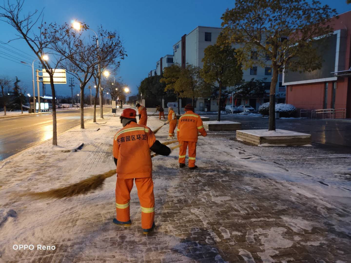 在園區(qū)公舍防疫值守的李佃左說(shuō)道:雖說(shuō)疫情來(lái)了,但大家伙的心是牢牢團(tuán)結(jié)在一起的,這不一看下雪了,擔(dān)心復(fù)工人員上班時(shí)的出行安危,大家伙都忙活起來(lái)啦!當(dāng)晚,建發(fā)公司員工、園區(qū)環(huán)衛(wèi)人員“相約”在轄區(qū)內(nèi)及園區(qū)道路街頭,在嚴(yán)寒中默默堅(jiān)守,與冰雪爭(zhēng)分奪秒,你鏟我掃、撒布融雪劑,井然有序,從容不亂,大家齊心協(xié)力、配合默契,為保障轄區(qū)內(nèi)通暢竭盡全力。在掃雪除冰的同時(shí),園區(qū)公舍集宿區(qū)工作人員仍然堅(jiān)守在執(zhí)勤點(diǎn)執(zhí)勤防控,有序做好各項(xiàng)疫情防控工作。