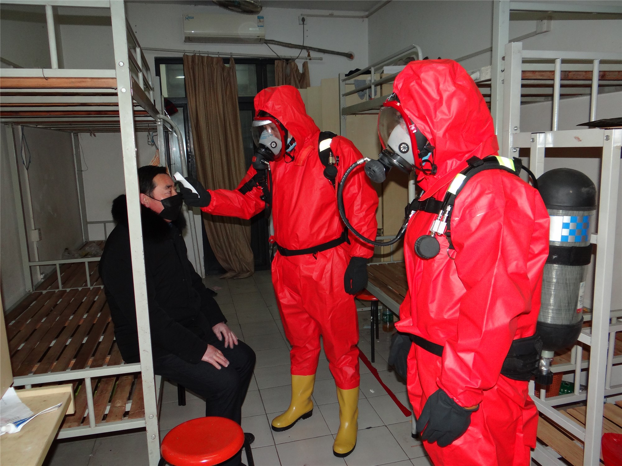 本次演練主要模擬一位5天前從徐州回到園區(qū)公舍的35歲男性患者,因發(fā)熱、咳嗽、咽痛、頭痛現(xiàn)象開始進行演練,應(yīng)急小組迅速拉起警戒、轉(zhuǎn)移、指定區(qū)域隔離、消毒,并匯報相關(guān)部門,按照實戰(zhàn)應(yīng)急響應(yīng)標準,統(tǒng)一領(lǐng)導(dǎo)指揮,工作人員加強個人防護,演練過程緊張有序,細致謹慎,整場新型冠狀病毒肺炎應(yīng)急演練活動取得圓滿成功。