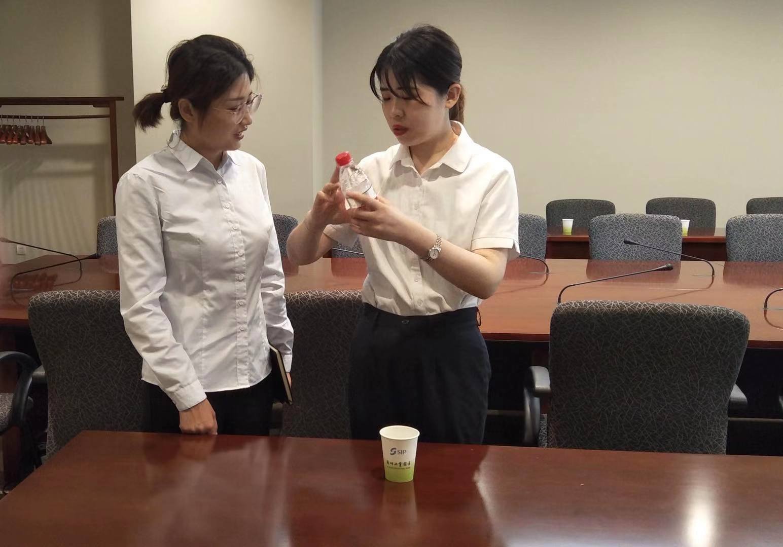 一行人兵分兩路,客服環(huán)境組跟隨蘇州工業(yè)園區(qū)環(huán)境部負(fù)責(zé)人學(xué)習(xí)會(huì)務(wù)服務(wù)的會(huì)前準(zhǔn)備工作、會(huì)后清潔工作,重點(diǎn)學(xué)習(xí)會(huì)務(wù)實(shí)操服務(wù),工程人員跟隨工程部學(xué)習(xí)會(huì)議廳設(shè)備配置和保養(yǎng)。