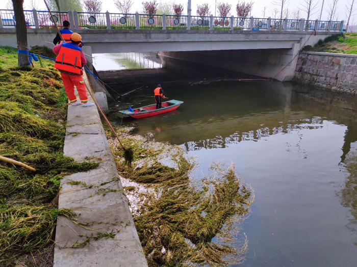 隨著天氣溫度逐漸升高,園區(qū)利民河、蔡莊大溝等河道水草大面積繁殖,為了營造良好的水環(huán)境,扎實(shí)做好水面保潔工作,打造“水清、岸綠、河暢”的水生態(tài)環(huán)境,近期,建發(fā)公司組織環(huán)衛(wèi)隊(duì)伍集中開展河道水草打撈。