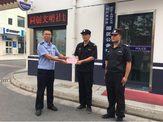 為表彰協(xié)助公安機(jī)關(guān)抓獲市局督辦系列盜竊案件嫌疑人的見義勇為行為,9月21日,蘇宿工業(yè)園區(qū)公安分局一行人來到園區(qū)公舍,根據(jù)《宿遷市見義勇為基金會獎勵撫恤辦法》和《宿遷市聯(lián)防保安人員見義勇為獎勵辦法》相關(guān)規(guī)定,研究決定對7月23日晚成功擒獲“園區(qū)公舍系列盜竊案”嫌疑人的兩名園區(qū)公舍保安張可、鞠銀龍進(jìn)行獎勵。