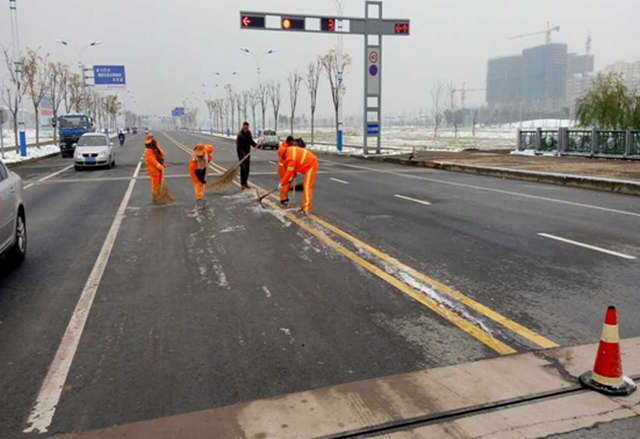 11月24日,小雪節(jié)氣剛過,宿遷便迎來了一場突如其來的小雪,雖然路面積雪不多,但伴隨著凜冽的寒風(fēng),氣溫驟降,次日早晨部分路面仍存在結(jié)冰現(xiàn)象,加上路面落葉較多,環(huán)衛(wèi)工人天未亮就走上街頭開始除雪化冰,對(duì)于他們來講,這注定又是忙碌的一天,經(jīng)過3個(gè)小時(shí)緊張而有序的忙碌,基本完成了園區(qū)主次干道的清掃工作。