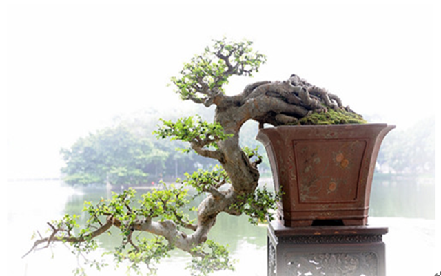 因地處五嶺之南面稱為嶺南派。嶺南派盆景形成過程中,受嶺南畫派的影響,創(chuàng)造了以“截干蓄枝”為主的獨(dú)特的折枝法構(gòu)圖,形成“挺茂自然,飄逸豪放”特色。創(chuàng)作題材,或師法自然,或取于畫本,分別創(chuàng)作了秀茂雄奇大樹型、扶疏挺拔高聳型、野趣橫生天然型和矮干密葉疊翠型等具有明顯地方特色的樹木盆景;又利用華南地區(qū)所產(chǎn)的天然觀賞石材,依據(jù)“咫尺千里”、“小中見大”的畫理,創(chuàng)作出再現(xiàn)嶺南自然風(fēng)貌為特色的山水盆景。